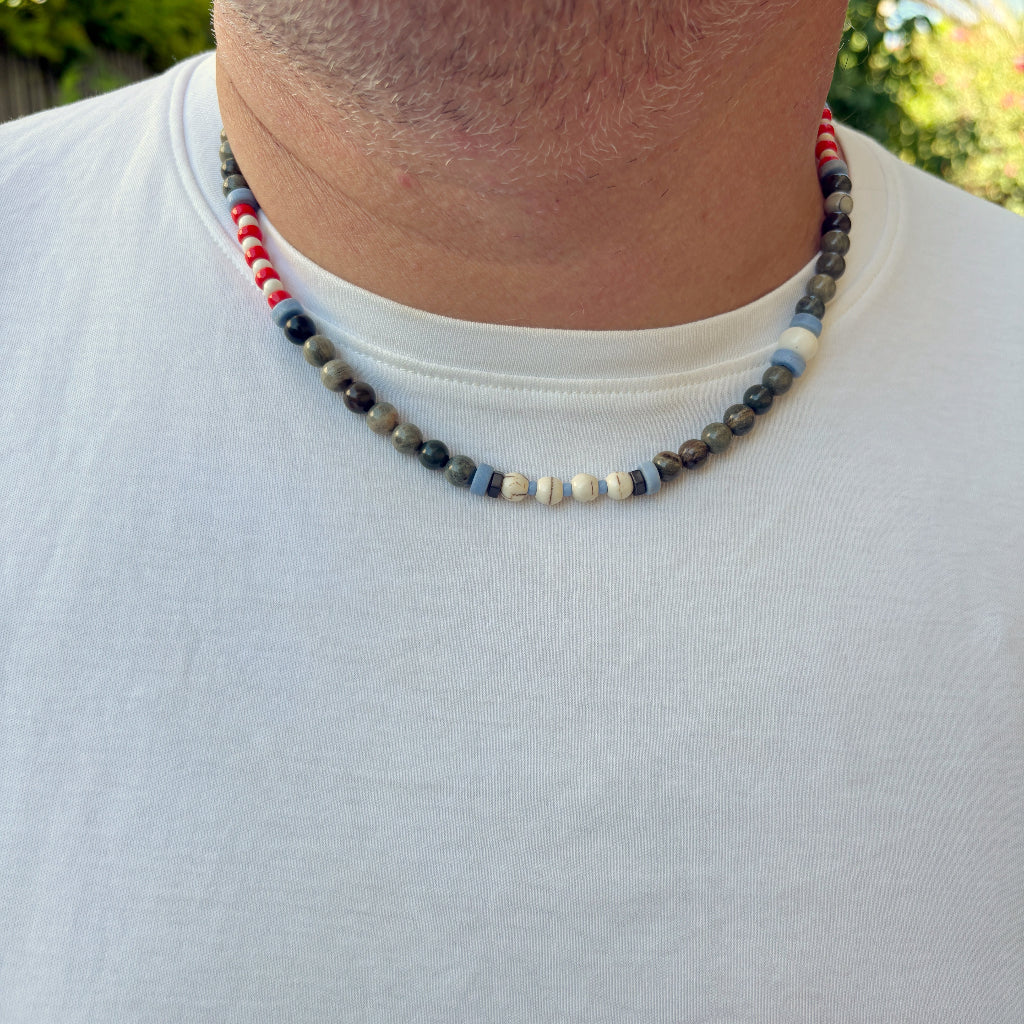 בתכשיטים שלנו אנו משלבים חרוזים מחומרים ממוחזרים כמו חרוזי זכוכית מבקבוקי קוקה קולה ממוחזרים