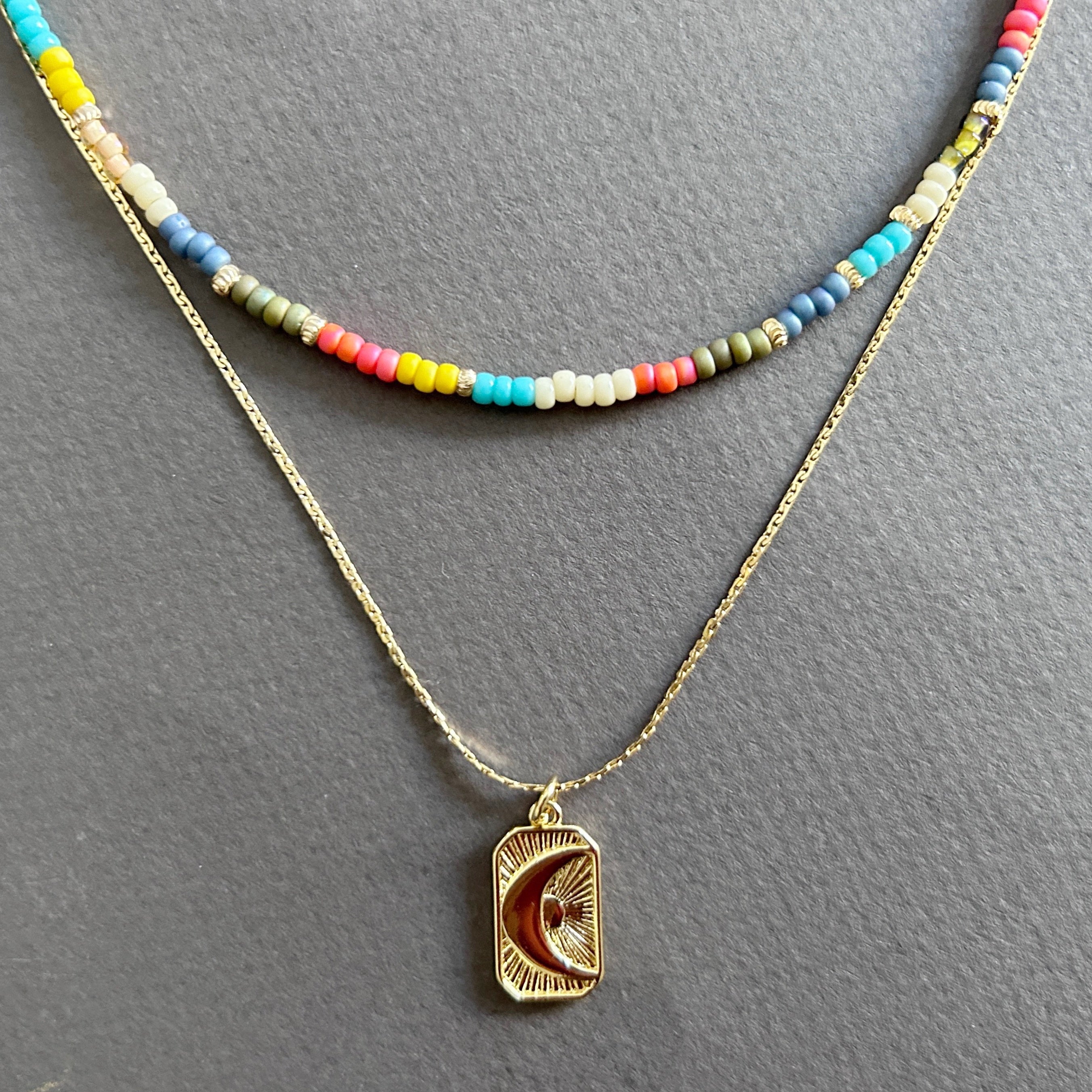 שרשרת קצרה והיסטרית עם חרוזים יפנים צבעוניים, עם נגיעות של זהב בציפוי 18K איכותי.